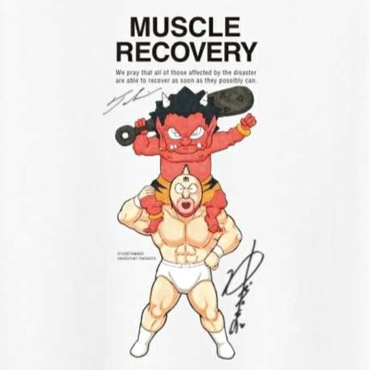 美里町在住の画家、瀧下和之さんが親交のあるキン肉マンの作者、ゆでたまご先生に呼びかけ、支援のために協力してデザインしていただいた、他では入手できない貴重なデザインです。
